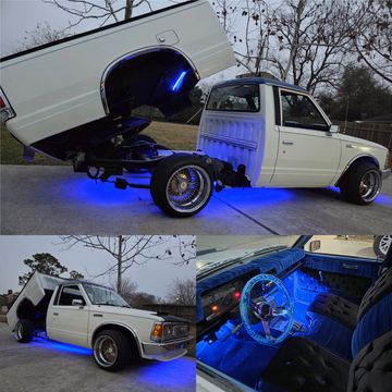 Exterior Lighting: Smoked LED Laser Tail Lights / Rear Fender Lights, RGB LED underglow, RGB LED lights in the fender vents.